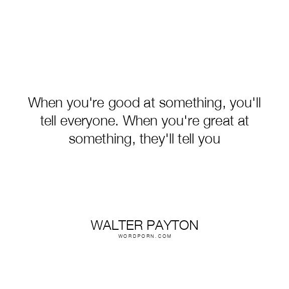 When you're good at something, you'll tell everyone. When you're great at something, they'll tell you