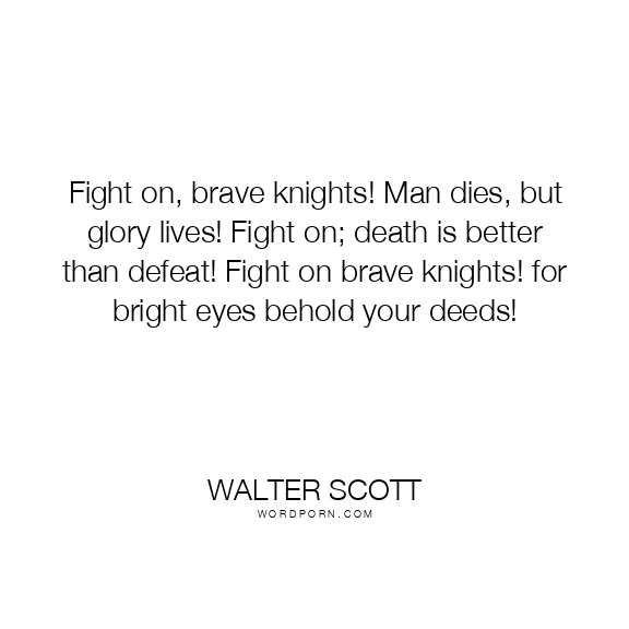 Fight on, brave knights! Man dies, but glory lives! Fight on; death is better than defeat! Fight on brave knights! for bright eyes behold your deeds!