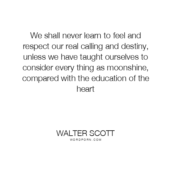 We shall never learn to feel and respect our real calling and destiny, unless we have taught ourselves to consider every thing as moonshine, compared with the education of the heart