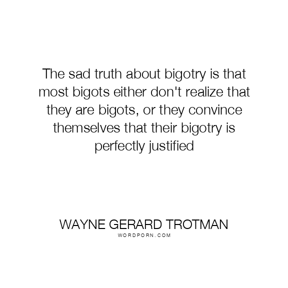 The sad truth about bigotry is that most bigots either don't realize that they are bigots, or they convince themselves that their bigotry is perfectly justified