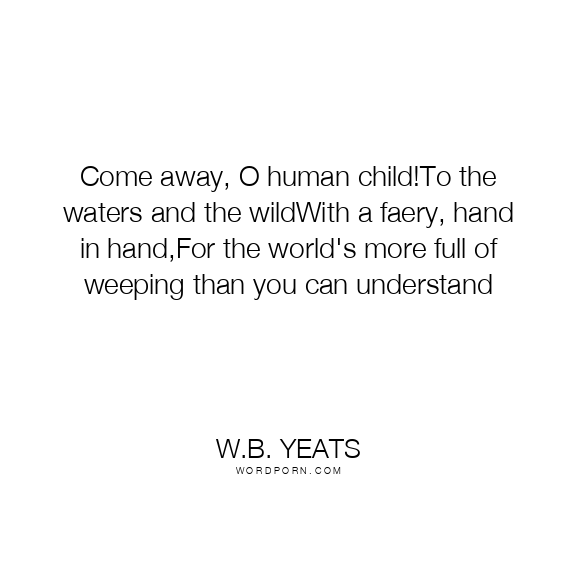 Come away, O human child!To the waters and the wildWith a faery, hand in hand,For the world's more full of weeping than you can understand