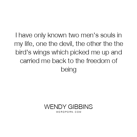 Copy Image I have only known two men's souls in my life, one the devil, the other the the bird's wings which picked me up and carried me back to the freedom of being Moms Typewriter A A SAVE THIS IMAGE