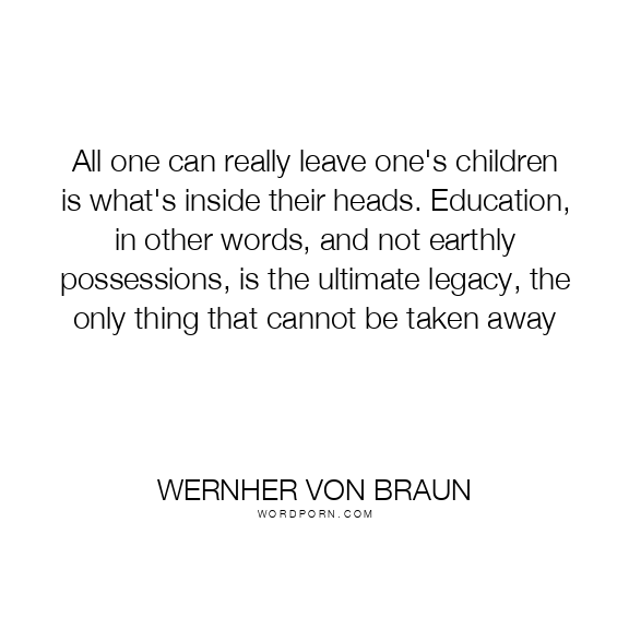 All one can really leave one's children is what's inside their heads. Education, in other words, and not earthly possessions, is the ultimate legacy, the only thing that cannot be taken away