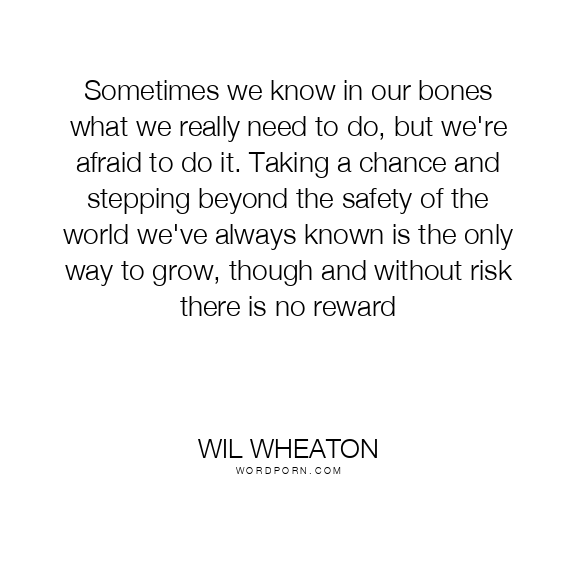 Sometimes we know in our bones what we really need to do, but we're afraid to do it. Taking a chance and stepping beyond the safety of the world we've always known is the only way to grow, though and without risk there is no reward