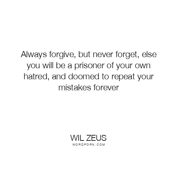 Always forgive, but never forget, else you will be a prisoner of your own hatred, and doomed to repeat your mistakes forever