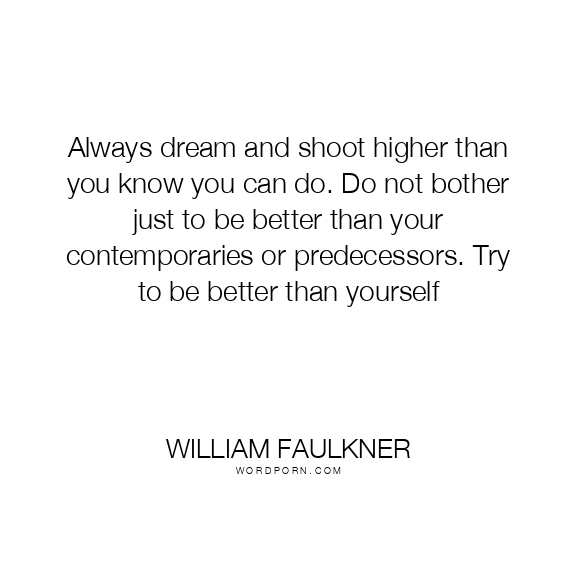 Always dream and shoot higher than you know you can do. Do not bother just to be better than your contemporaries or predecessors. Try to be better than yourself