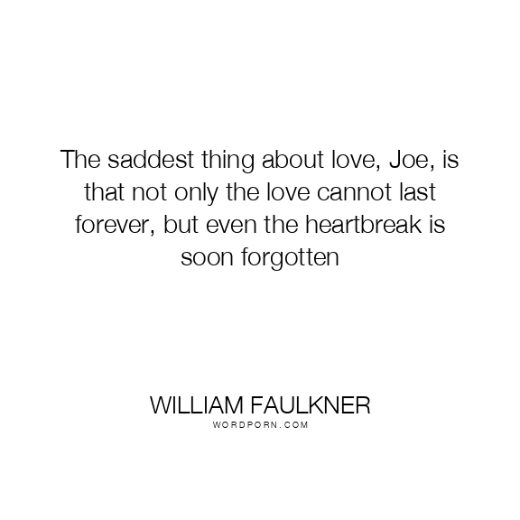 The saddest thing about love, Joe, is that not only the love cannot last forever, but even the heartbreak is soon forgotten