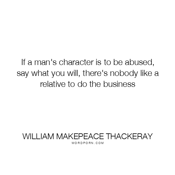 If a man's character is to be abused, say what you will, there's nobody like a relative to do the business