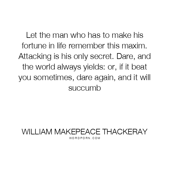 Let the man who has to make his fortune in life remember this maxim. Attacking is his only secret. Dare, and the world always yields: or, if it beat you sometimes, dare again, and it will succumb