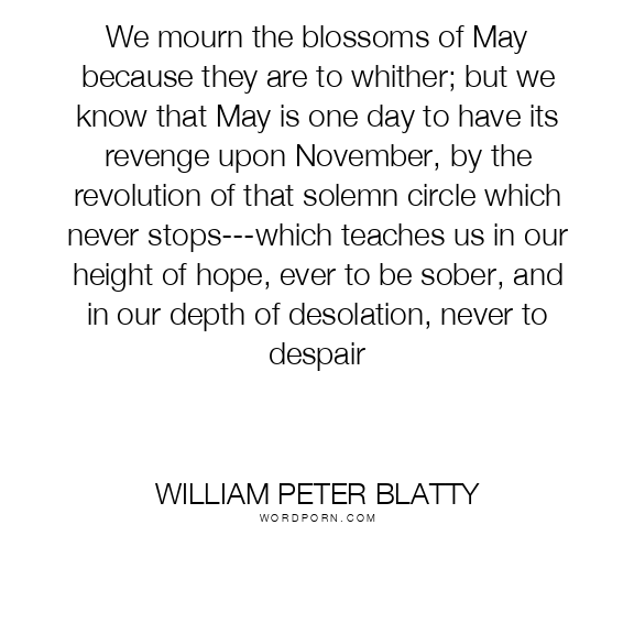 We mourn the blossoms of May because they are to whither; but we know that May is one day to have its revenge upon November, by the revolution of that solemn circle which never stops---which teaches us in our height of hope, ever to be sober, and in our depth of desolation, never to despair