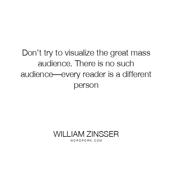 Don’t try to visualize the great mass audience. There is no such audience—every reader is a different person