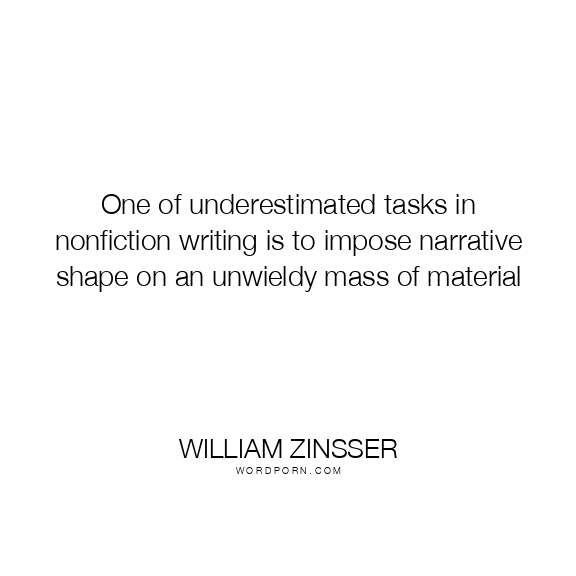 One of underestimated tasks in nonfiction writing is to impose narrative shape on an unwieldy mass of material