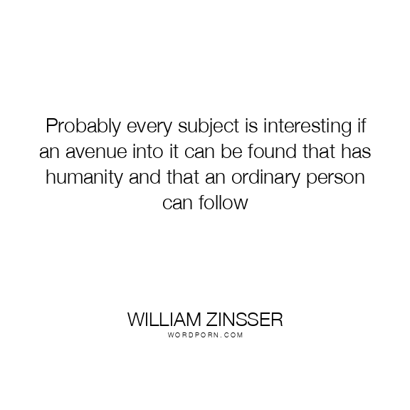 Probably every subject is interesting if an avenue into it can be found that has humanity and that an ordinary person can follow