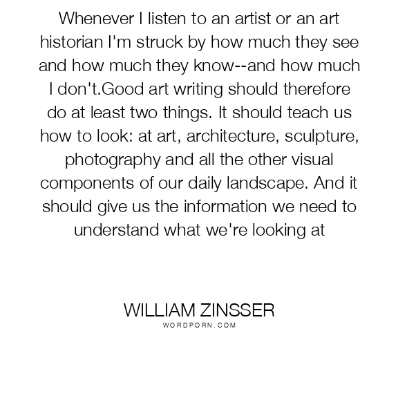 Whenever I listen to an artist or an art historian I'm struck by how much they see and how much they know--and how much I don't.Good art writing should therefore do at least two things. It should teach us how to look: at art, architecture, sculpture, photography and all the other visual components of our daily landscape. And it should give us the information we need to understand what we're looking at