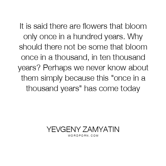 It is said there are flowers that bloom only once in a hundred years. Why should there not be some that bloom once in a thousand, in ten thousand years? Perhaps we never know about them simply because this "once in a thousand years" has come today