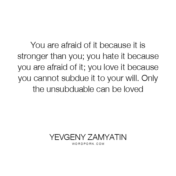 You are afraid of it because it is stronger than you; you hate it because you are afraid of it; you love it because you cannot subdue it to your will. Only the unsubduable can be loved
