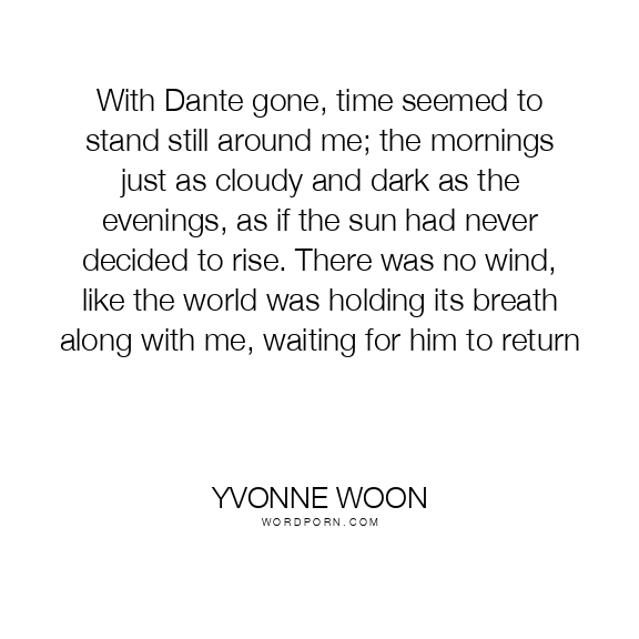 With Dante gone, time seemed to stand still around me; the mornings just as cloudy and dark as the evenings, as if the sun had never decided to rise. There was no wind, like the world was holding its breath along with me, waiting for him to return