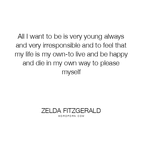 All I want to be is very young always and very irresponsible and to feel that my life is my own-to live and be happy and die in my own way to please myself