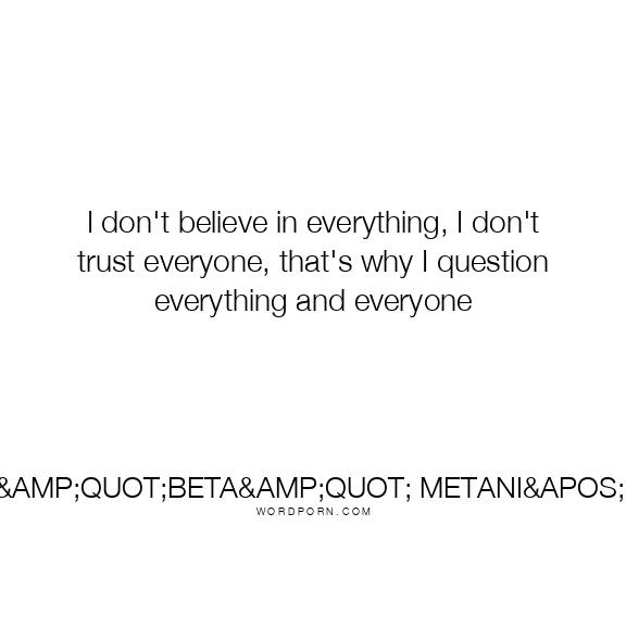 I don't believe in everything, I don't trust everyone, that's why I question everything and everyone