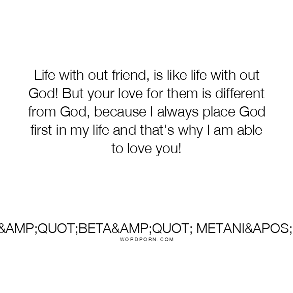 Life with out friend, is like life with out God! But your love for them is different from God, because I always place God first in my life and that's why I am able to love you!