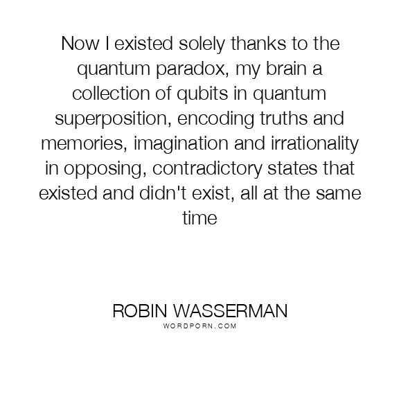 Now I existed solely thanks to the quantum paradox, my brain a collection of qubits in quantum superposition, encoding truths and memories, imagination and irrationality in opposing, contradictory states that existed and didn't exist, all at the same time