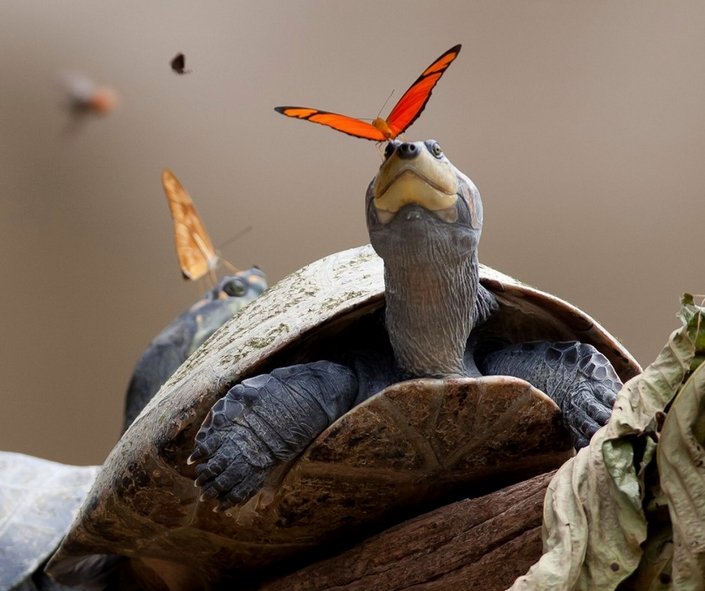A butterfly sipping on a turtle’s tears…No, it is not a verse taken from some poem, but an actual real life phenomenon and one, at that, successfully captured in Ecuador. This strange behavior known as lachryphagy (aka tear drinking) is one of the manners in which butterflies get necessary moisture and nutrients. The photos of this unique moment display two Dryas iulia butterflies balanced on the heads of some turtles and drinking their tears, and they were awarded the 2014 Wikimedia Picture of the Year.
