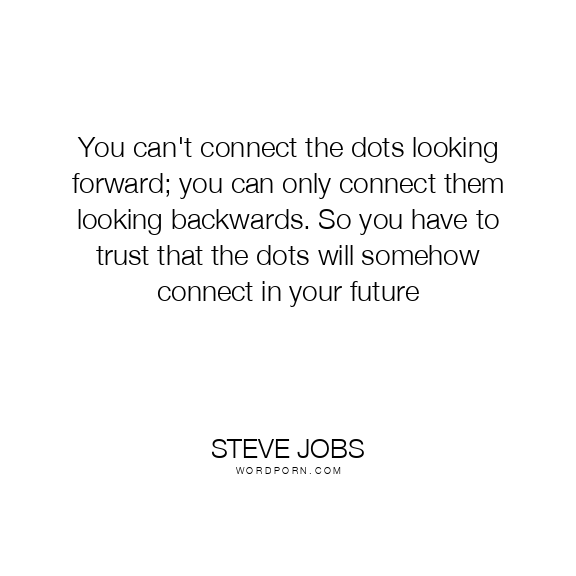 You can't connect the dots looking forward; you can only connect them looking backwards. So you have to trust that the dots will somehow connect in your future
