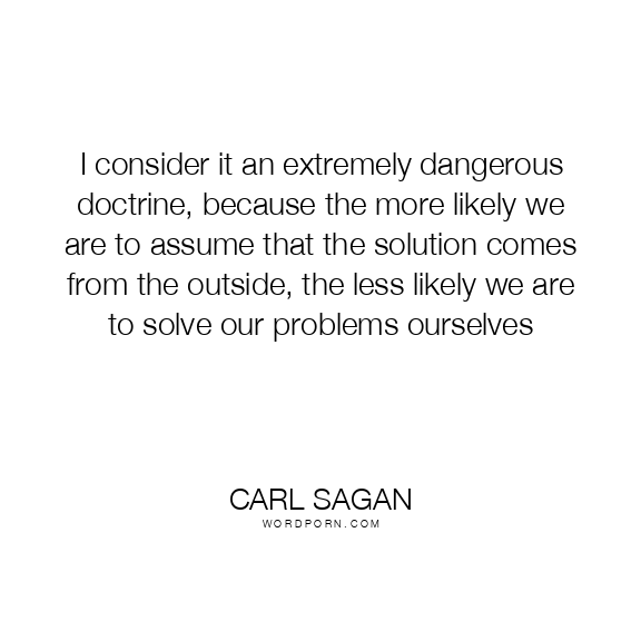 I consider it an extremely dangerous doctrine, because the more likely we are to assume that the solution comes from the outside, the less likely we are to solve our problems ourselves