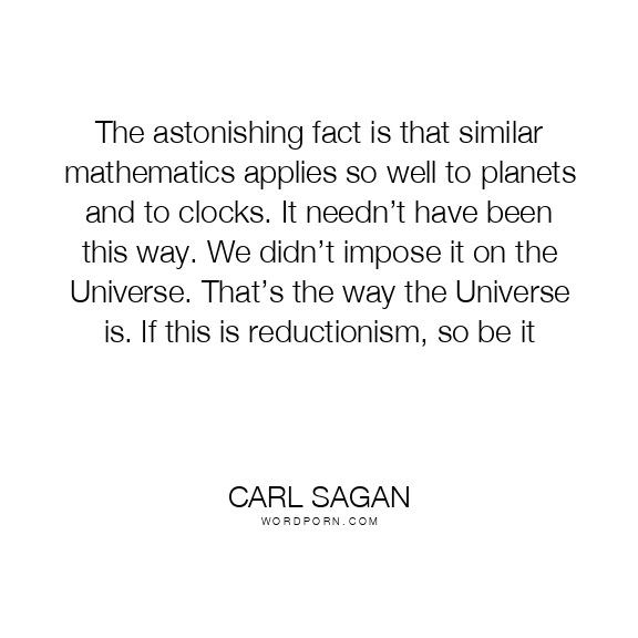 The astonishing fact is that similar mathematics applies so well to planets and to clocks. It needn’t have been this way. We didn’t impose it on the Universe. That’s the way the Universe is. If this is reductionism, so be it